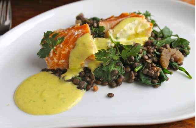 Reykta ýsu er hægt að matreiða á marga vegu. Hér eru uppskrift fyrir 2-3 einstaklinga þar sem meðlætið er linsubaunir og spínat með hollenskri sósu.Hráefni fyrir 2-3400-500 g reykt ýsa 250 ml mjólk piparLinsur með spínati200 ml puy-linsur1/2 rauðlaukur, saxaður1 sellerístöngull, saxaður1 lárviðarlauf1 timjankvistur1 tsk…