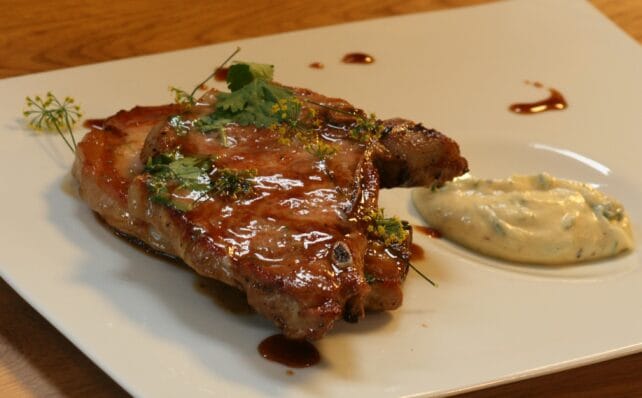 Svínakótelettur eru ljúffengar og safaríkar ef þær eru eldaðar rétt. Hér er uppskrift úr fórum Bjarna Gunnars Kristinssonar matreiðslumeistara. Skyrbernaise-sósan er einstakt leynivopn sem við hvetjum lesendur til að prófa.