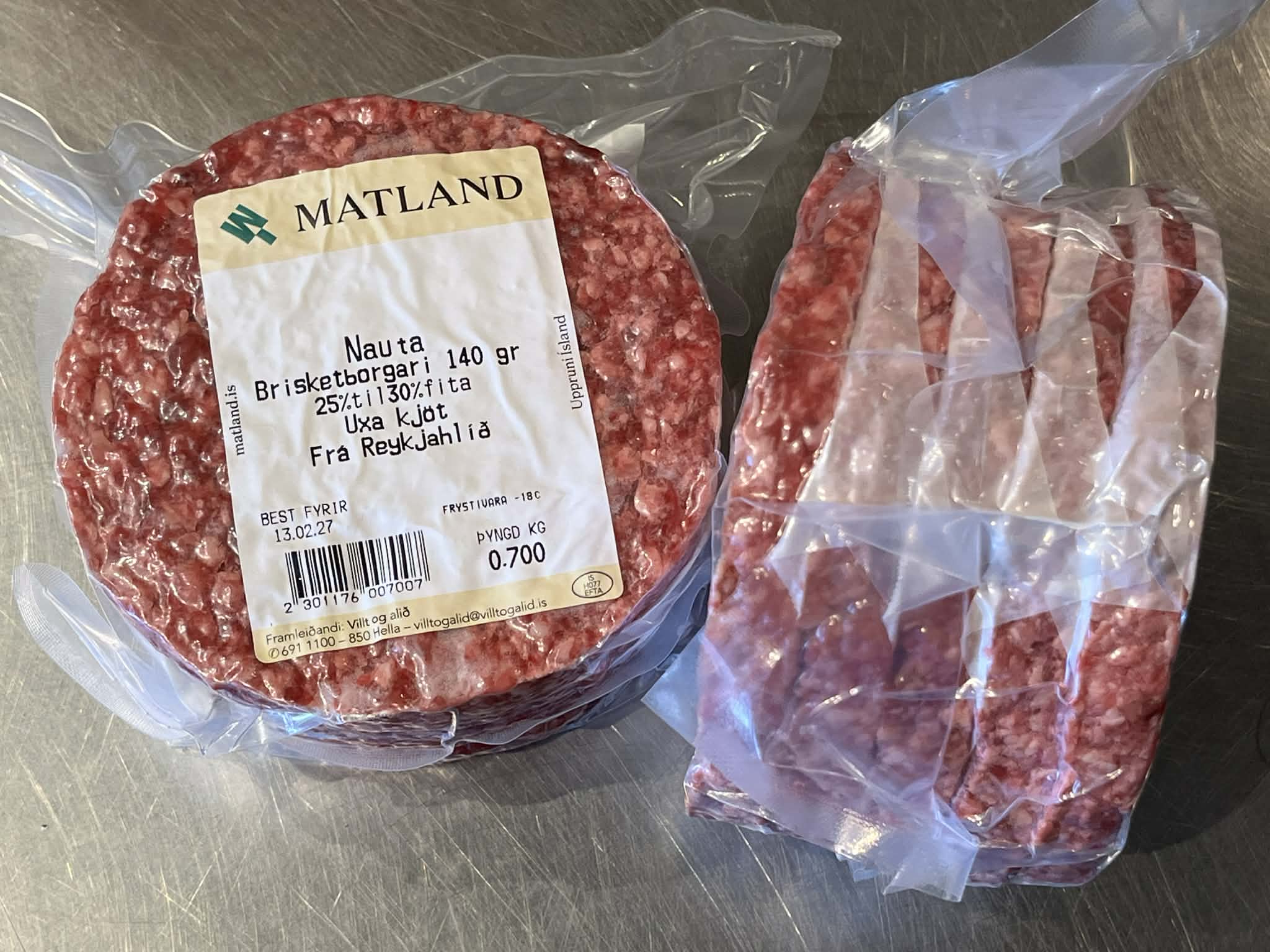 Innihald: Uxakjöt – Hamborgarar (20-25% fituinnihald)