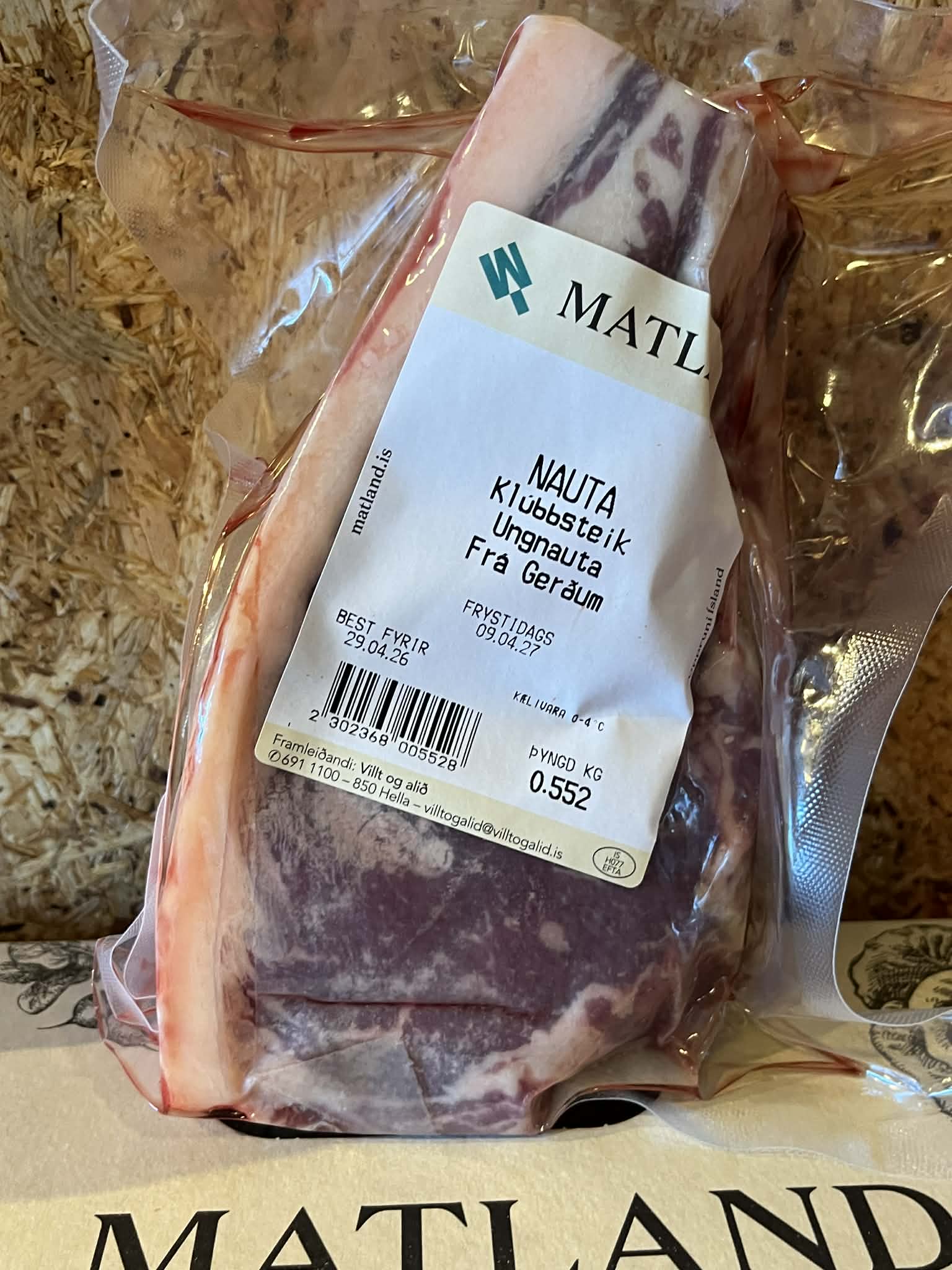Innihald: Klúbbsteik af Angus frá Gerðum.