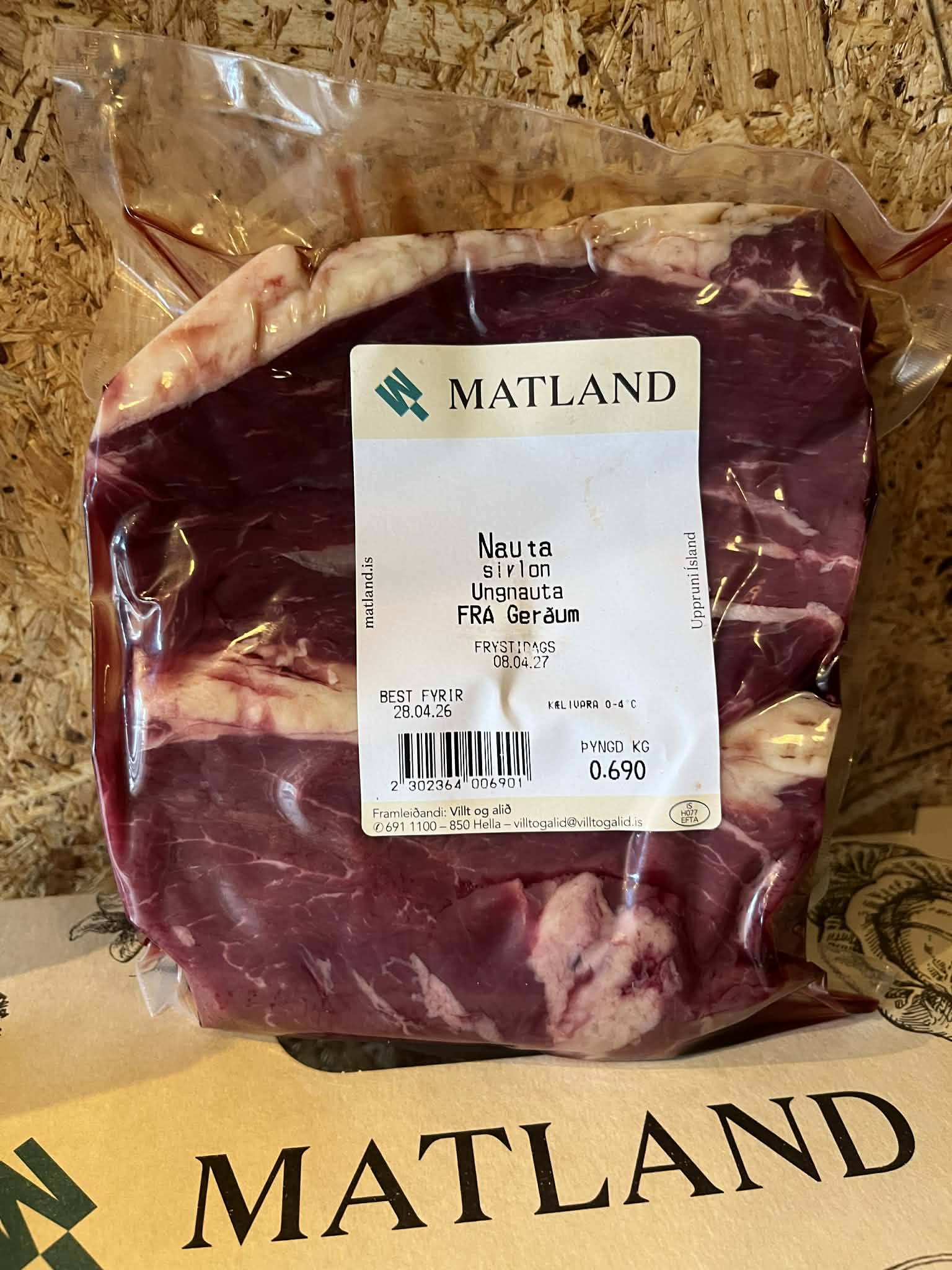 Innihald: Sirloinsteikur af Angus frá Gerðum.