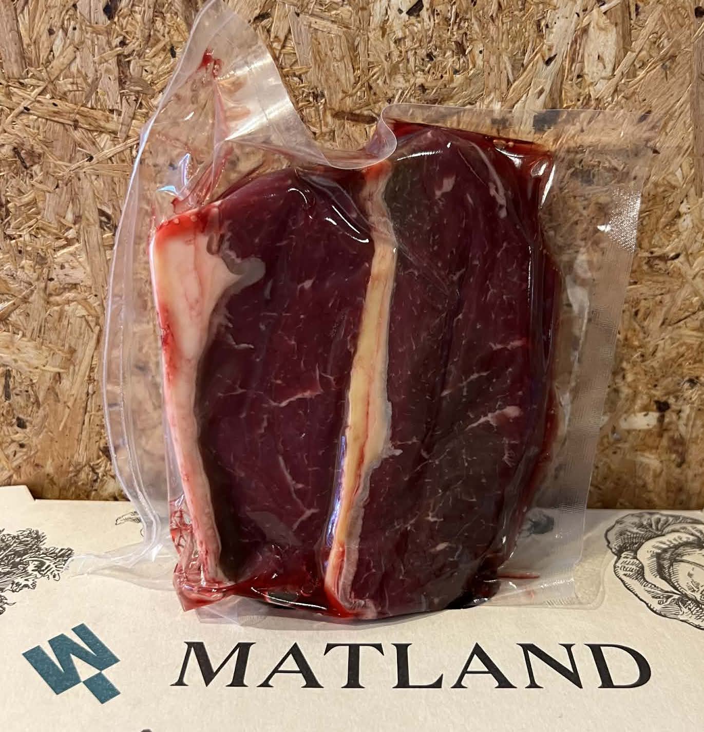 NY-strip, lífrænt vottað kjöt. Kílóverð: 8.420 kr.