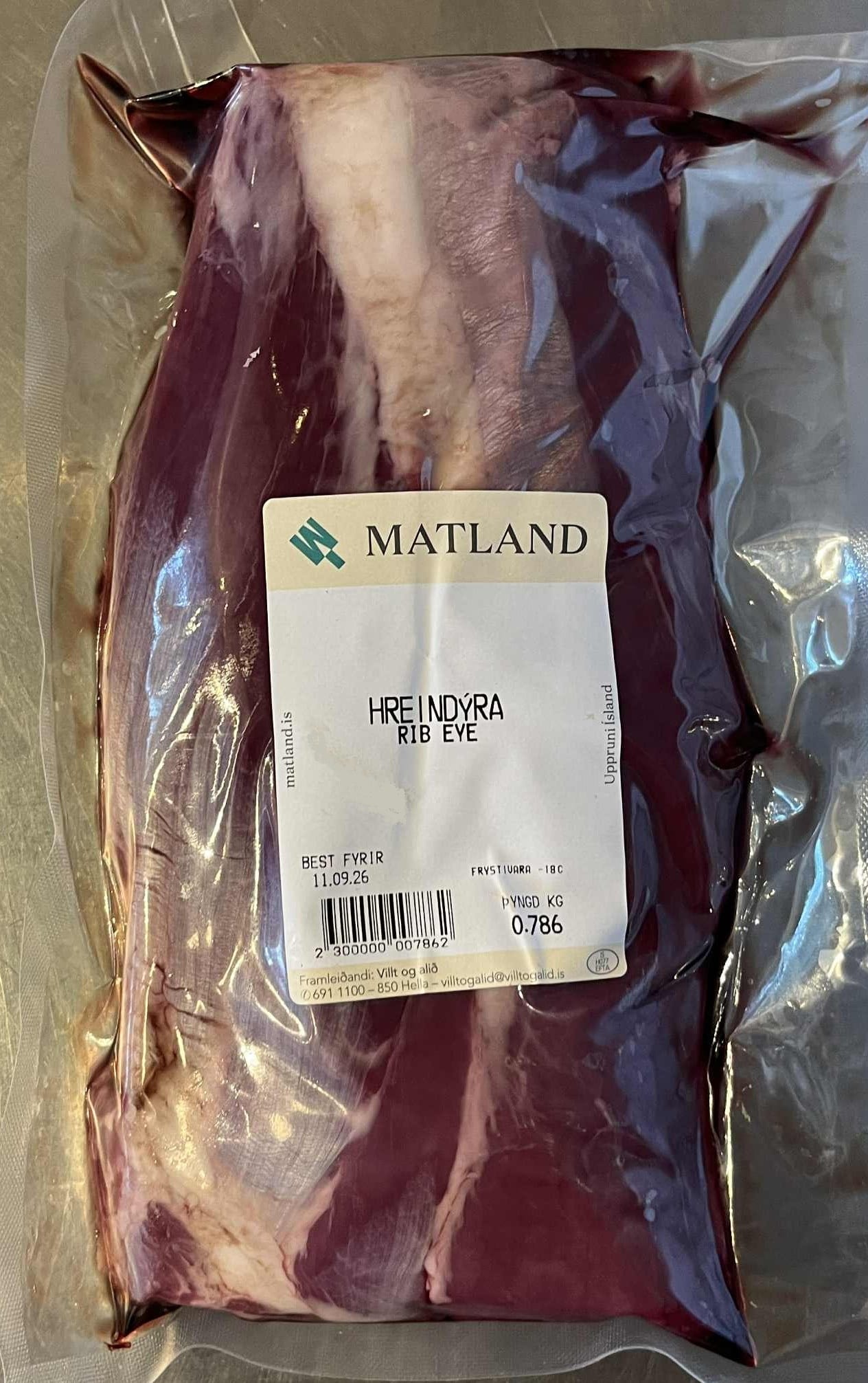 Hreindýraribeye. Kílóverð er 23.980 krónur.
