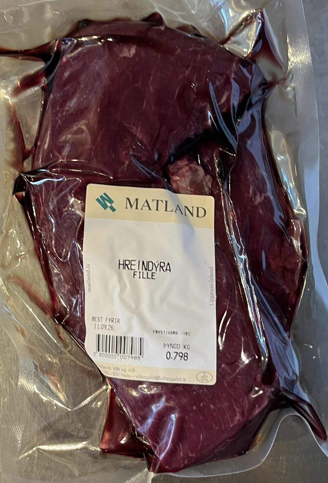 Íslensk hreindýrafille – ómótstæðilegur veislumatur. Kílóverð er 27.760 krónur. Kjötið er unnið hjá kjötvinnslunni Villt og alið ehf. á Hellu.