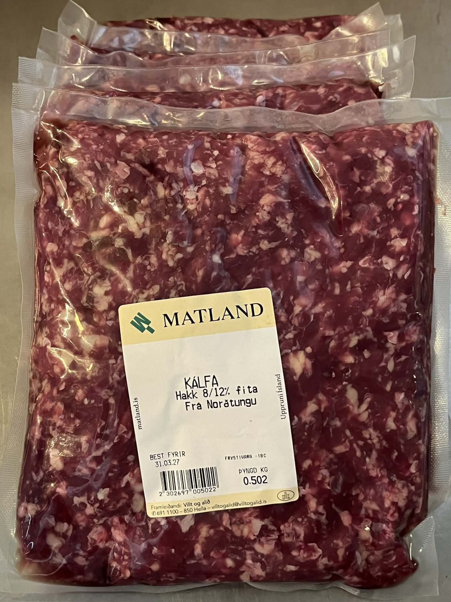 Innihald: Alikálfakjöt, hakk, 8% fituinnihald.
