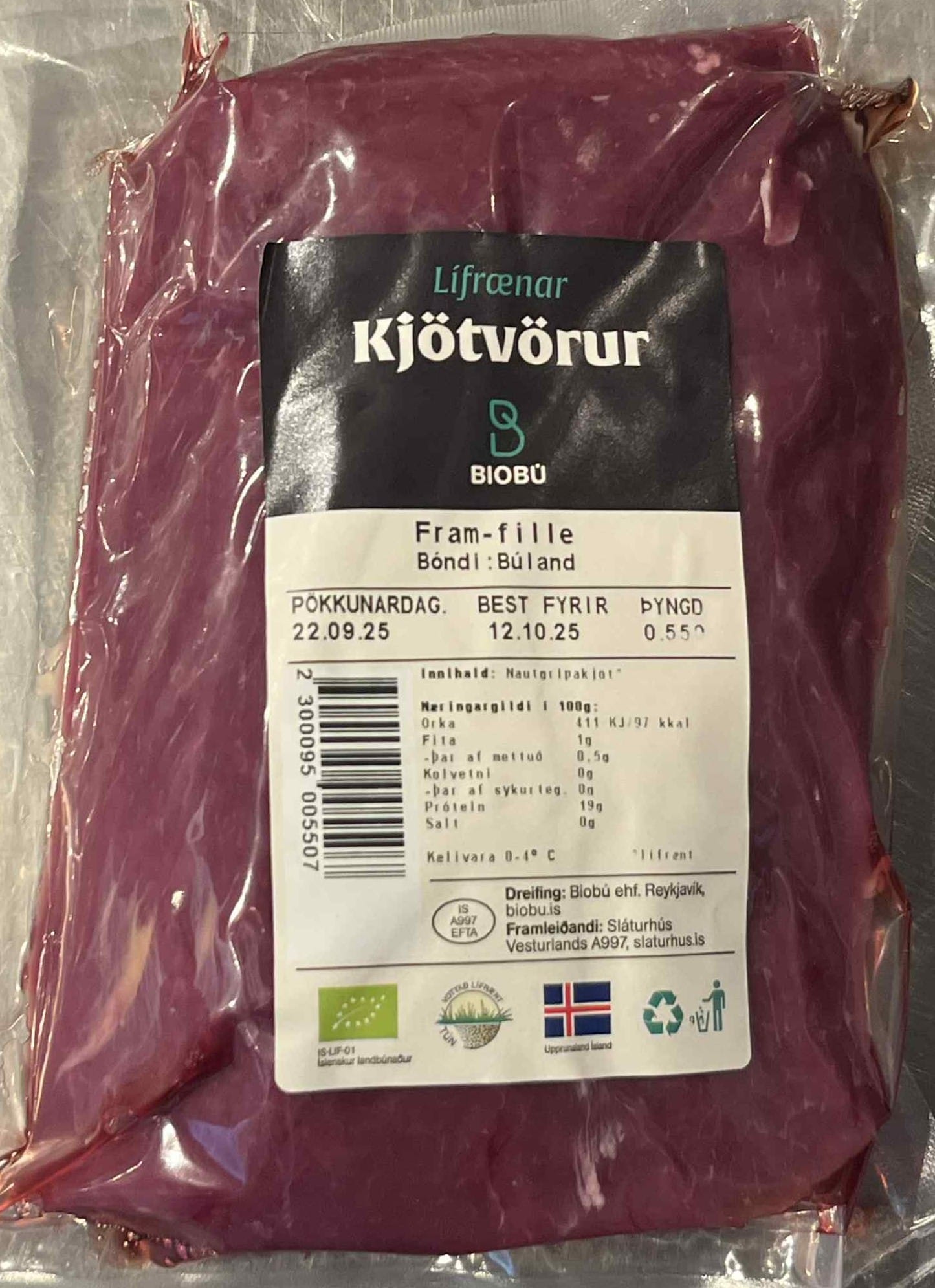 Fram-fille, lífrænt vottað nautgripakjöt. Kílóverð: 8.240 kr.