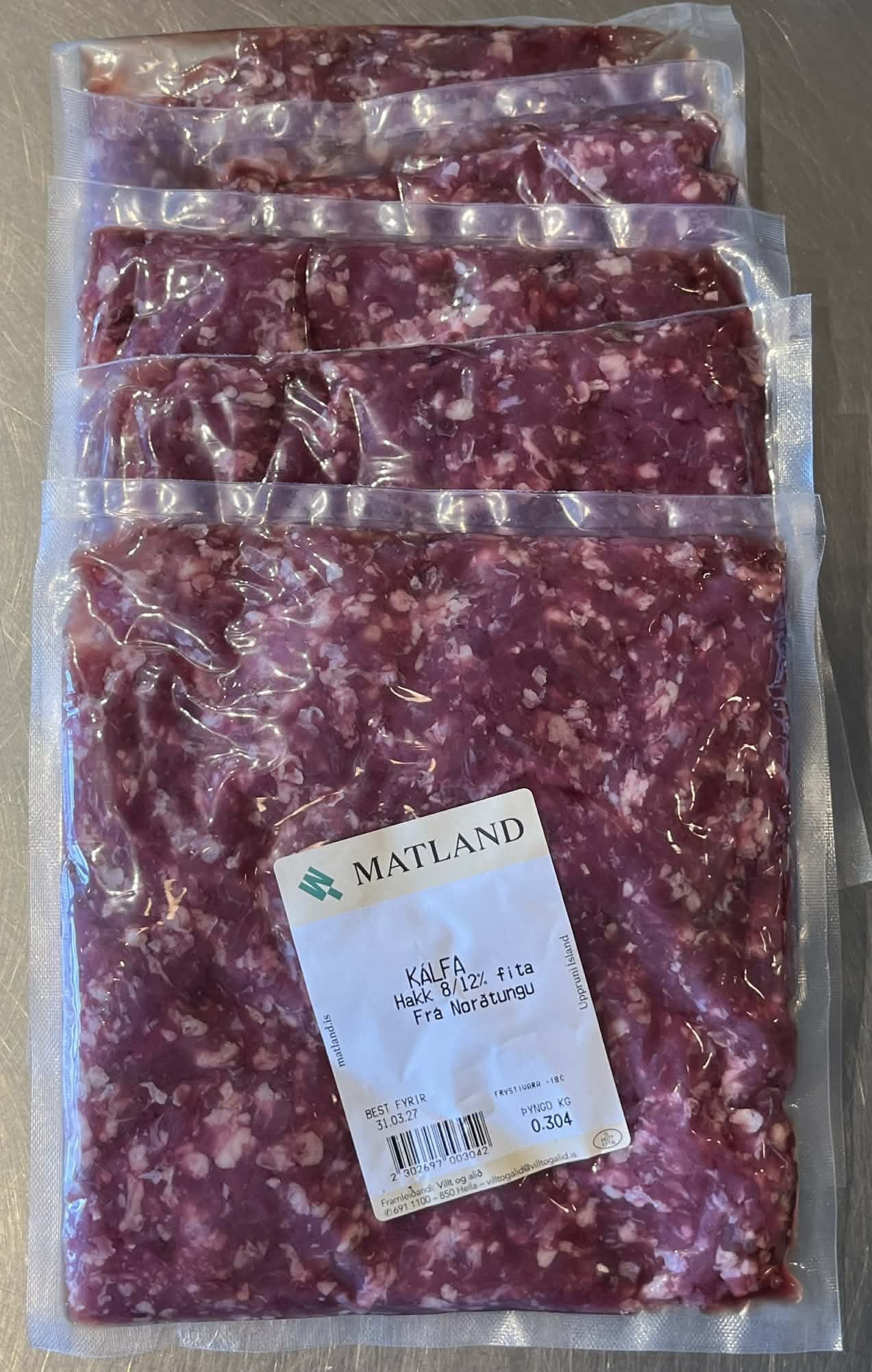 Innihald: Alikálfakjöt af holdagripum, hakk, 8-12% fituinnihald.