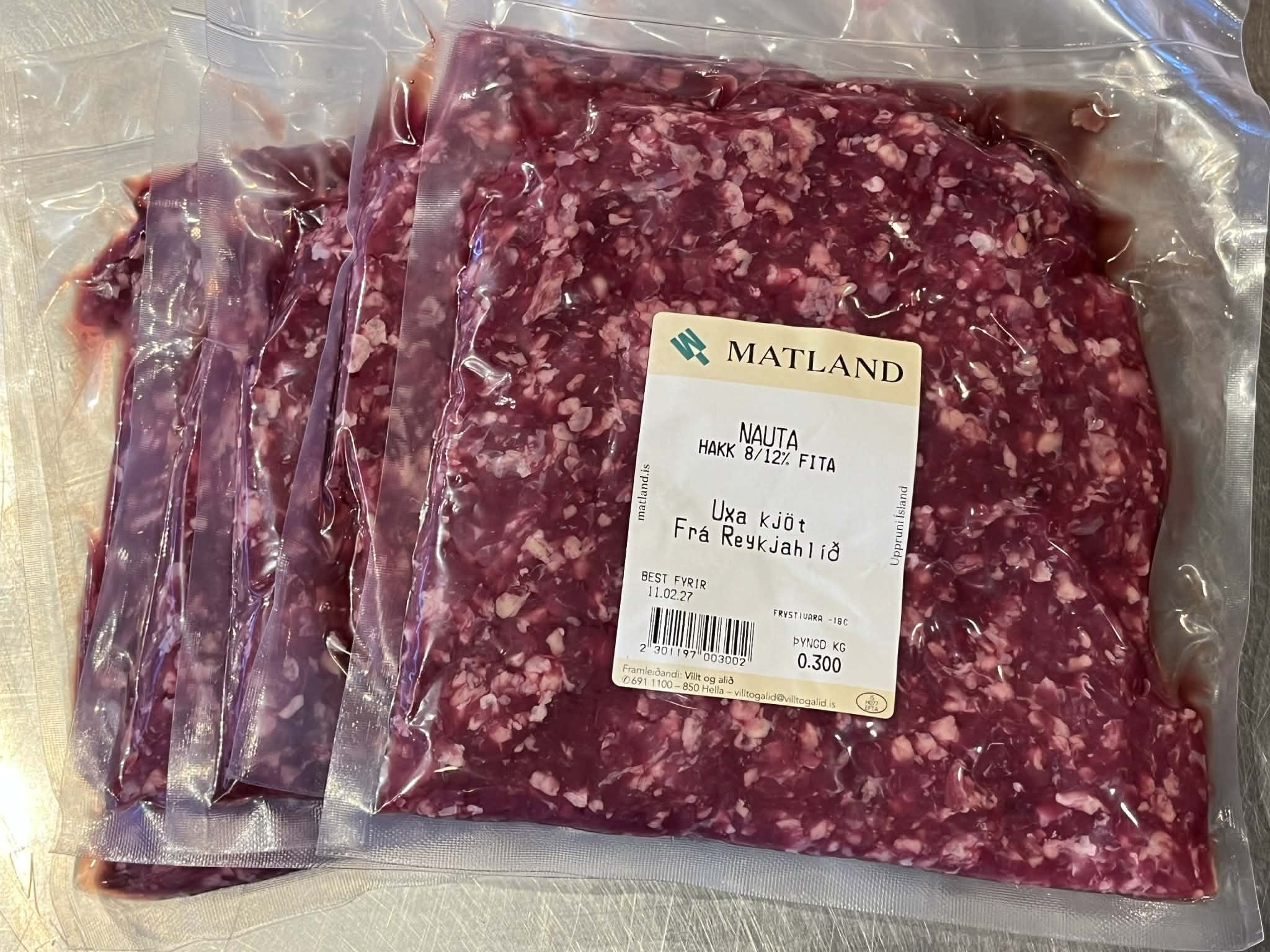 Innihald: Uxakjöt – Hakk, 8-12% fituinnihald.