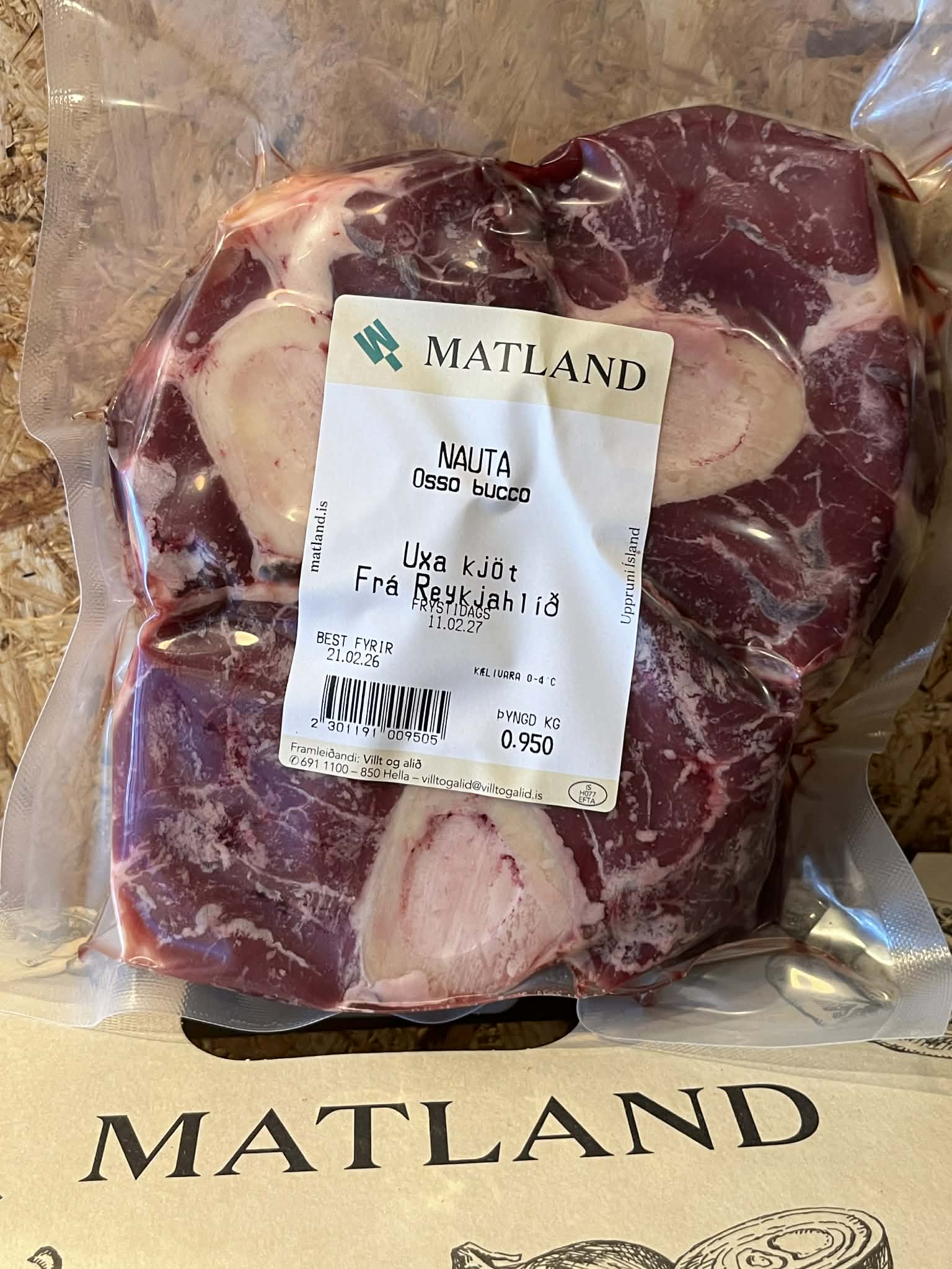 Innihald: Ungnaut (UN). Uxakjöt – osso bucco