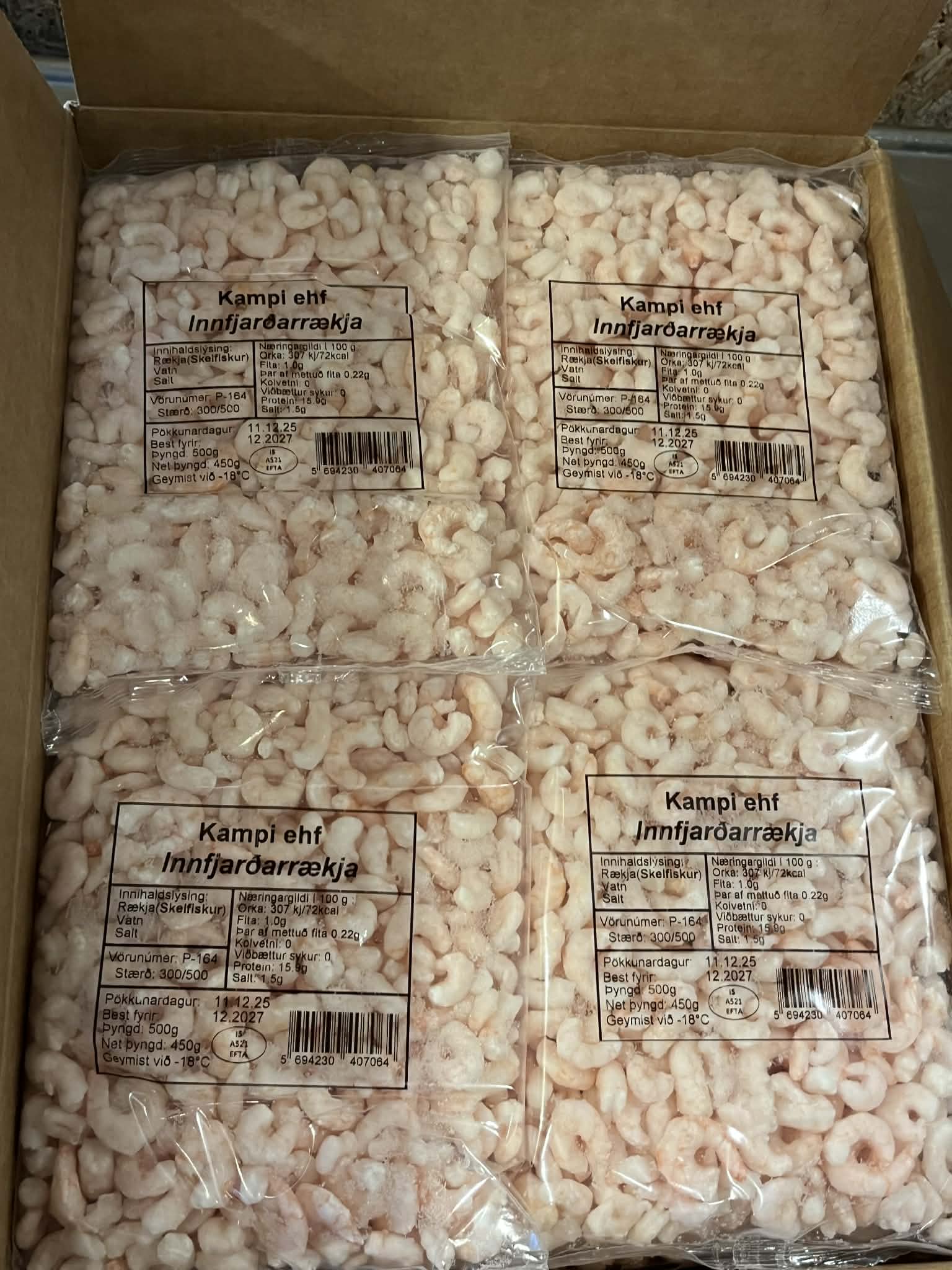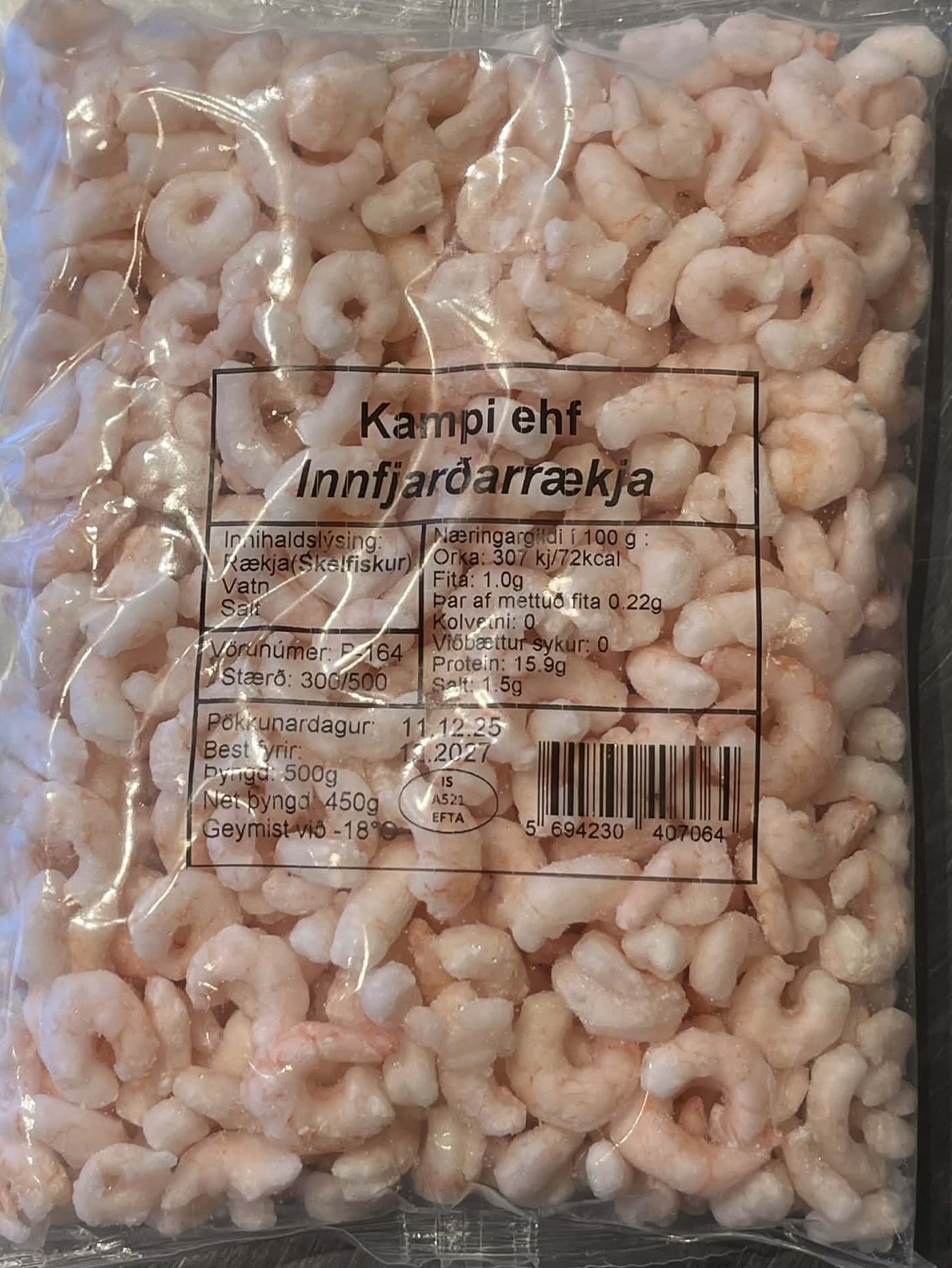 Innihald: Rækja (skelfiskur), vatn, salt.