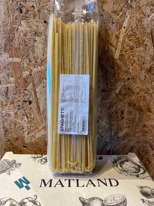 Spaghettí sem er framleitt hjá litlu fjölskyldufyrirtæki á Suður-Ítalíu. Það er að hluta til handgert og fer í gegnum hægt og langt þurrkunarferli. Suðutími á spaghettí er 12-14 mínútur.