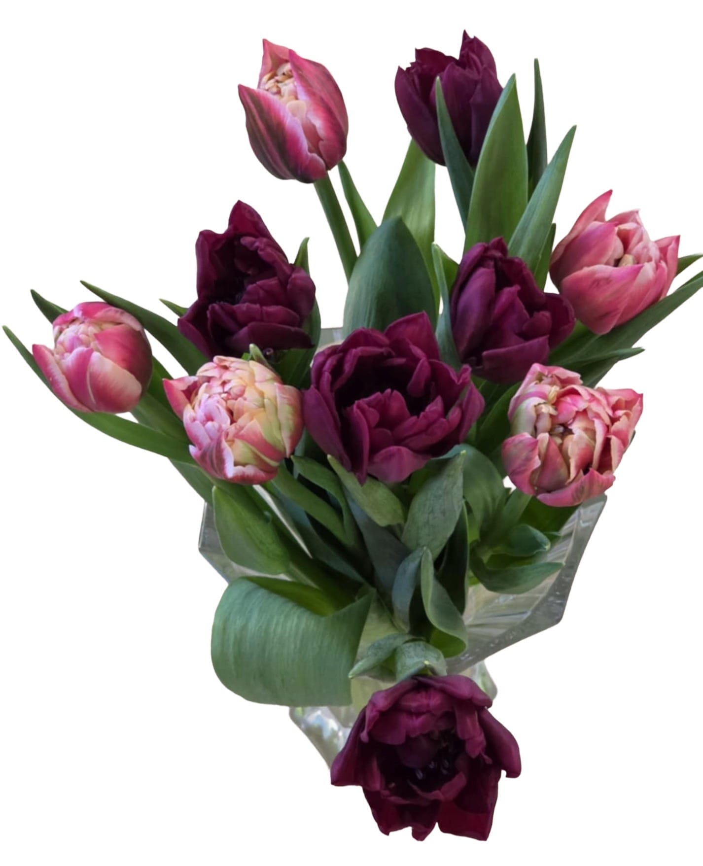 Túlipanar. Rauðhvítir og fjólubláir – tvöfaldir. 10 stk í búnti.